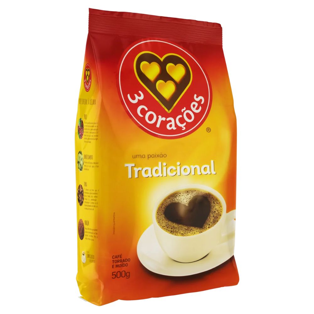 3 Coracoes Traditional Ground Coffee Café Torrado, 500 g / 1.1 lb Bag